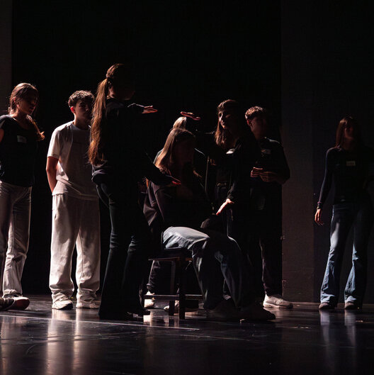 Jugendliche zwischen 16 und 26 Jahren probieren, improvisieren, diskutieren und entwickeln eine Inszenierung.